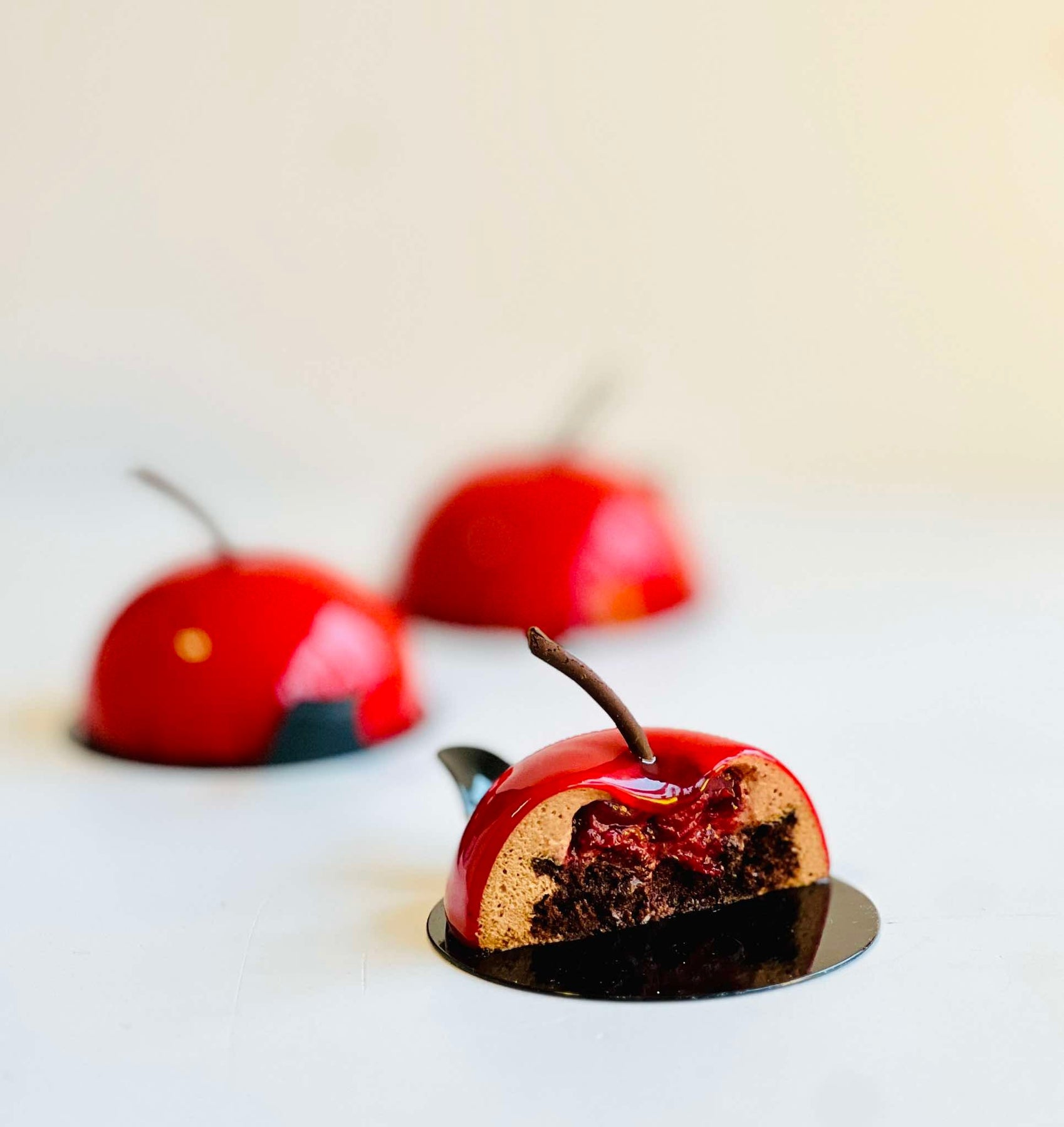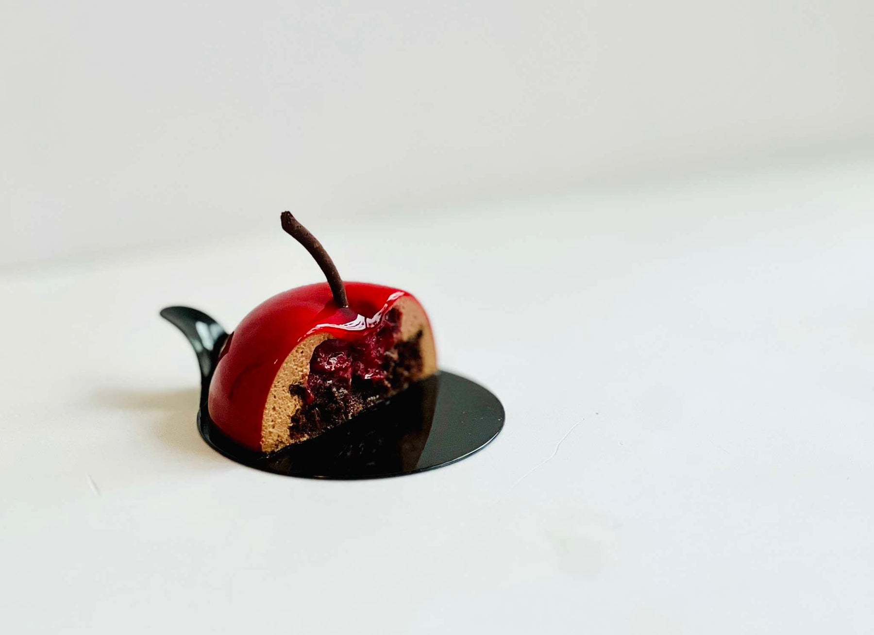 Täiuslik dessert, mis ühendab endas rikkaliku šokolaadi ja hapuka kirsi – elegantselt läikiva peegliga minikook, mis näeb välja kui kunstiteos!