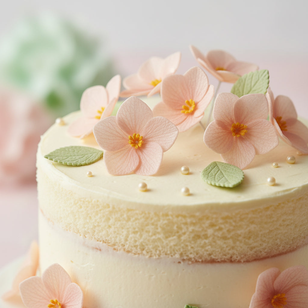 Pastelsetes toonides hortensia vahvlist lilled on kaunis ja kerge viis oma loomingule elegantne viimistlus anda.