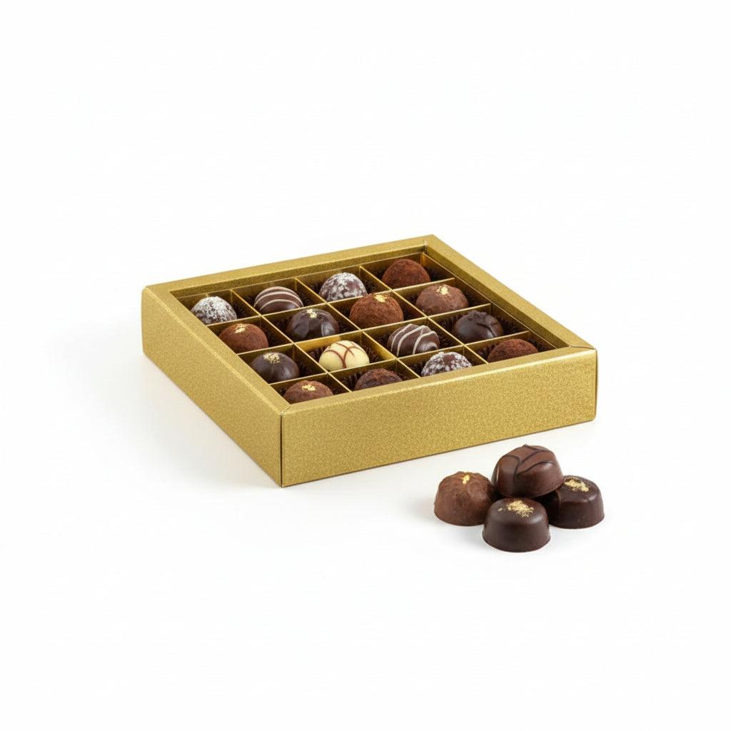 Kaunis ja elegantne kuldse tekstuuriga kinkekarp, mis sobib ideaalselt käsitöökommide, küpsiste, trühvlite või teiste väikeste kingituste pakendamiseks. Karp lisab igale maiusele pidulikkust ja väärikust – olgu selleks jõulukingitus, tänuavaldus või toote esitlemine kliendile.