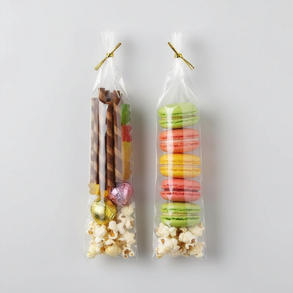 5.08 x 25.4 cm suurused pikad ribakujulised kotid on ideaalsed küpsiste, kommide, šokolaadi, popkorni, pähklite ja muude suupistete pakendamiseks.