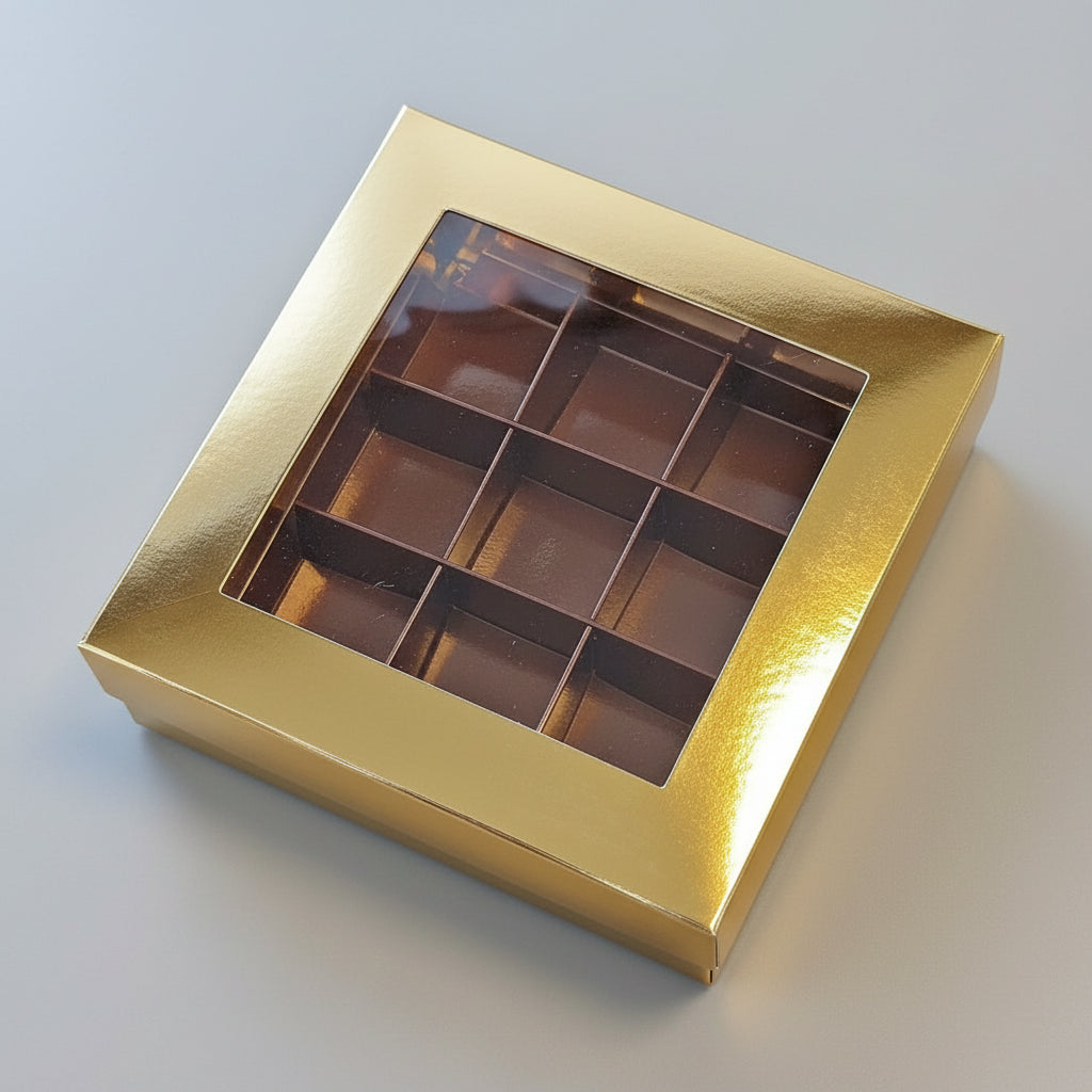 Kuldne trühvlikarp aknaga 130x130x45 mm