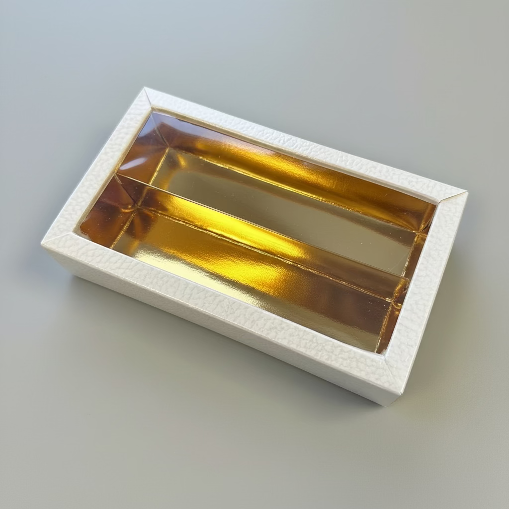 Mõõtmed 130 × 90 × 40 mm teevad karbist kompakti ja mugava valiku – sobib hästi väikeste kommipakkide, šokolaadikihla­de, makroonide või ühe-kahe küpsise jaoks.
