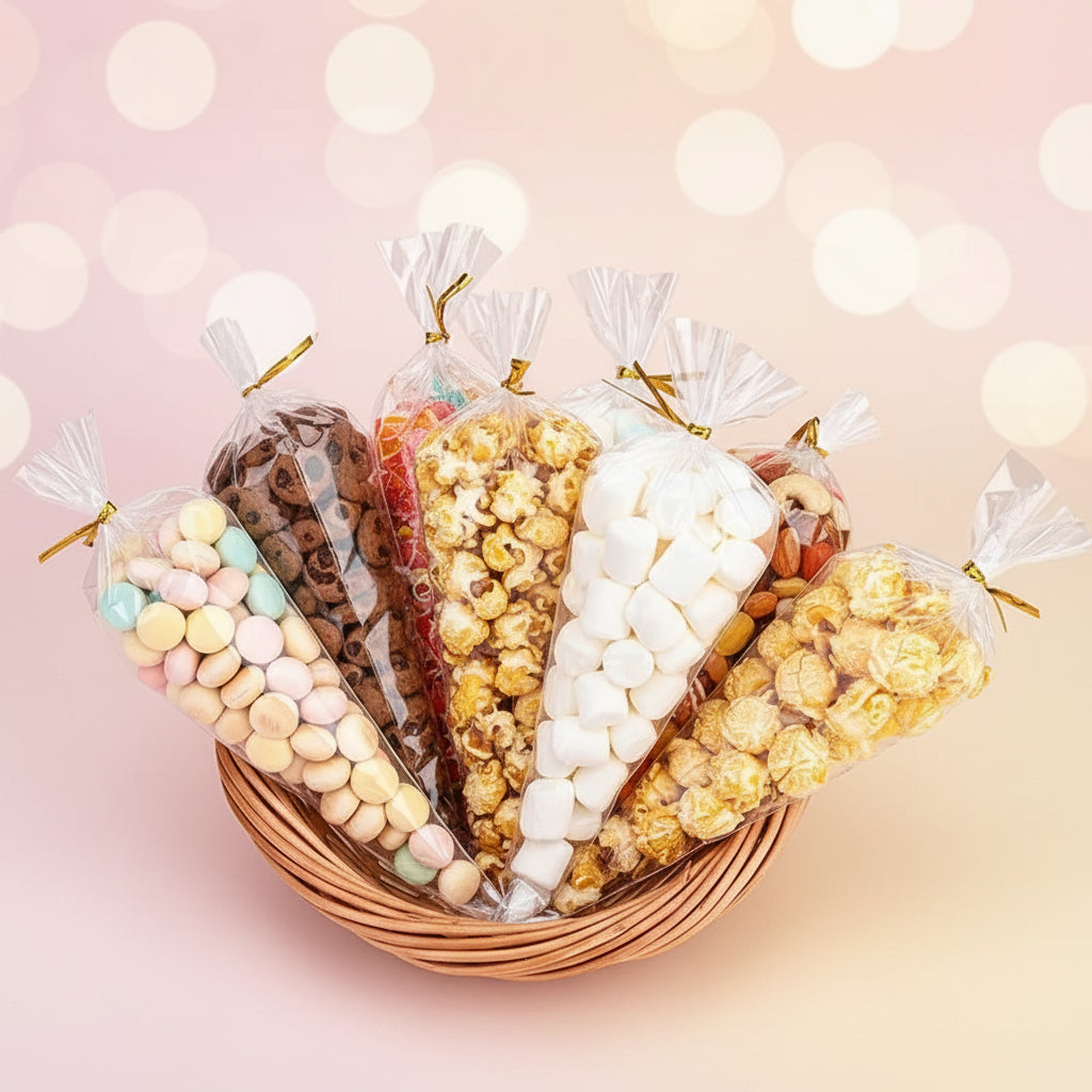 • 🍬 Läbipaistev ja toidukvaliteediga tsellofaan – sobib otse maiuste pakendamiseks