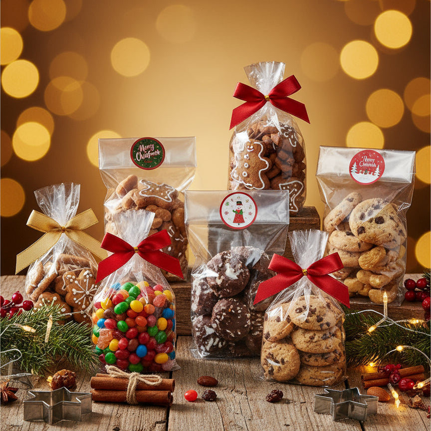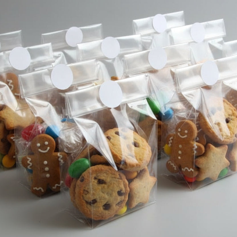Läbipaistvad pakke-kotikesed kandilse laiema põhjaga mõõtudega 120*250*60mm.