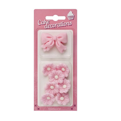 Suhkrust roosad lilled ja lipsud mix 9tk