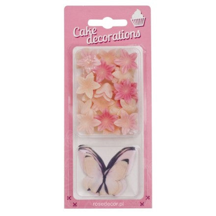 Vahvlist roosad minililled ja liblikad mix 30tk