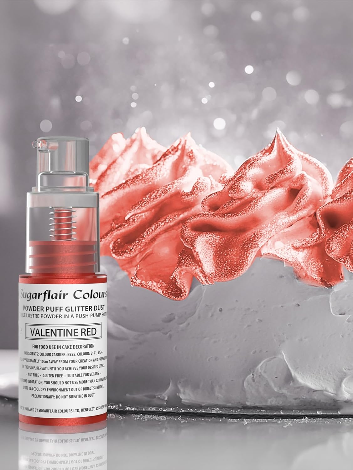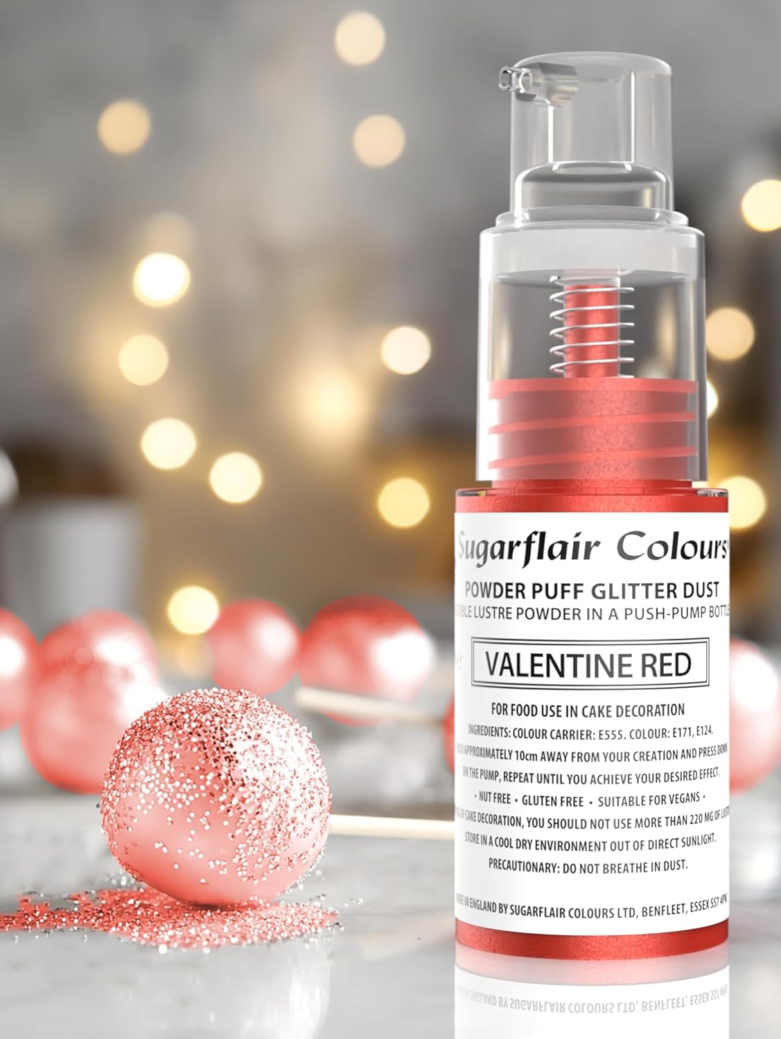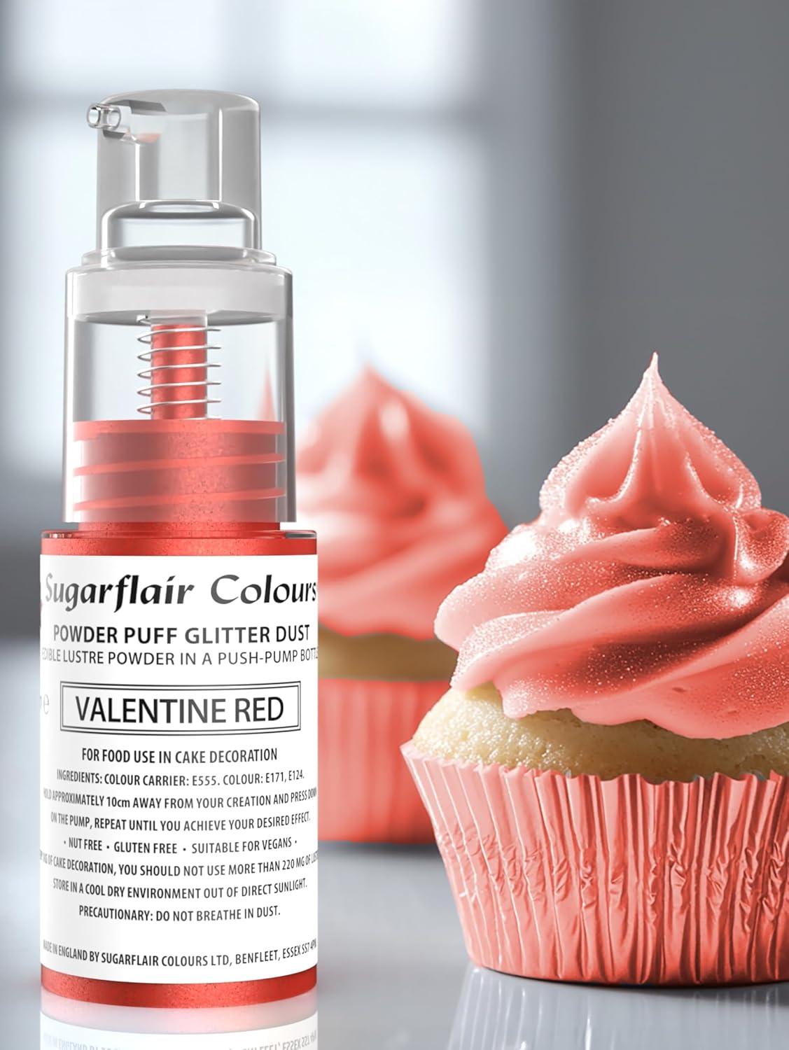 Sugarflairi pumbaga pihustatav pulbertolm on kiire ja lihtne viis kookidele, koogikestele, kaunistustele ja muule kauni välimuse andmiseks. Pulbriga tolmupihustit on lihtne kasutada.