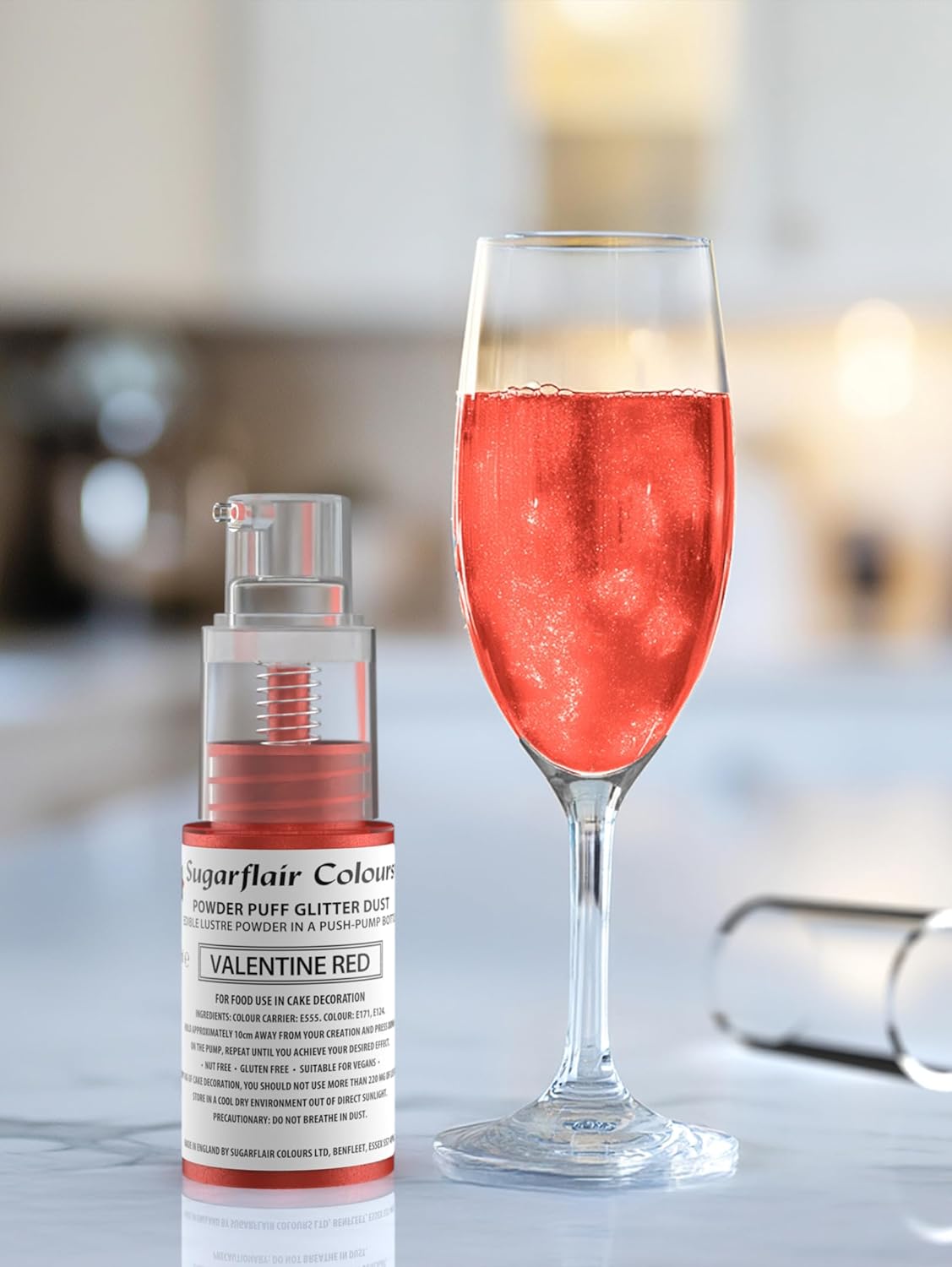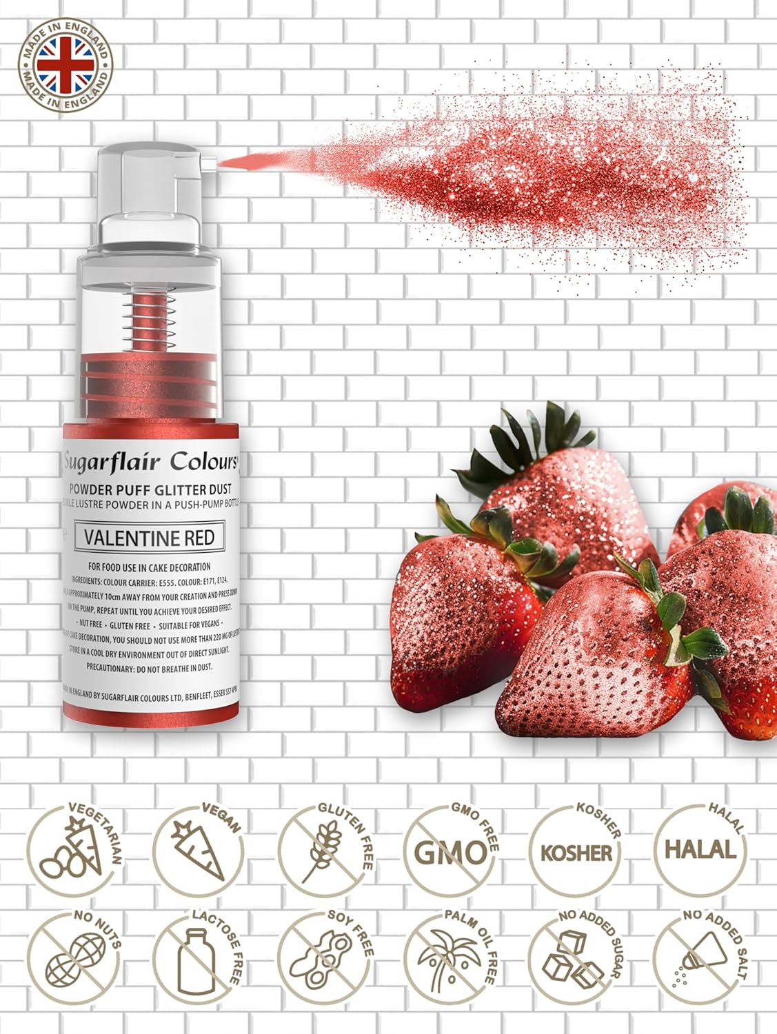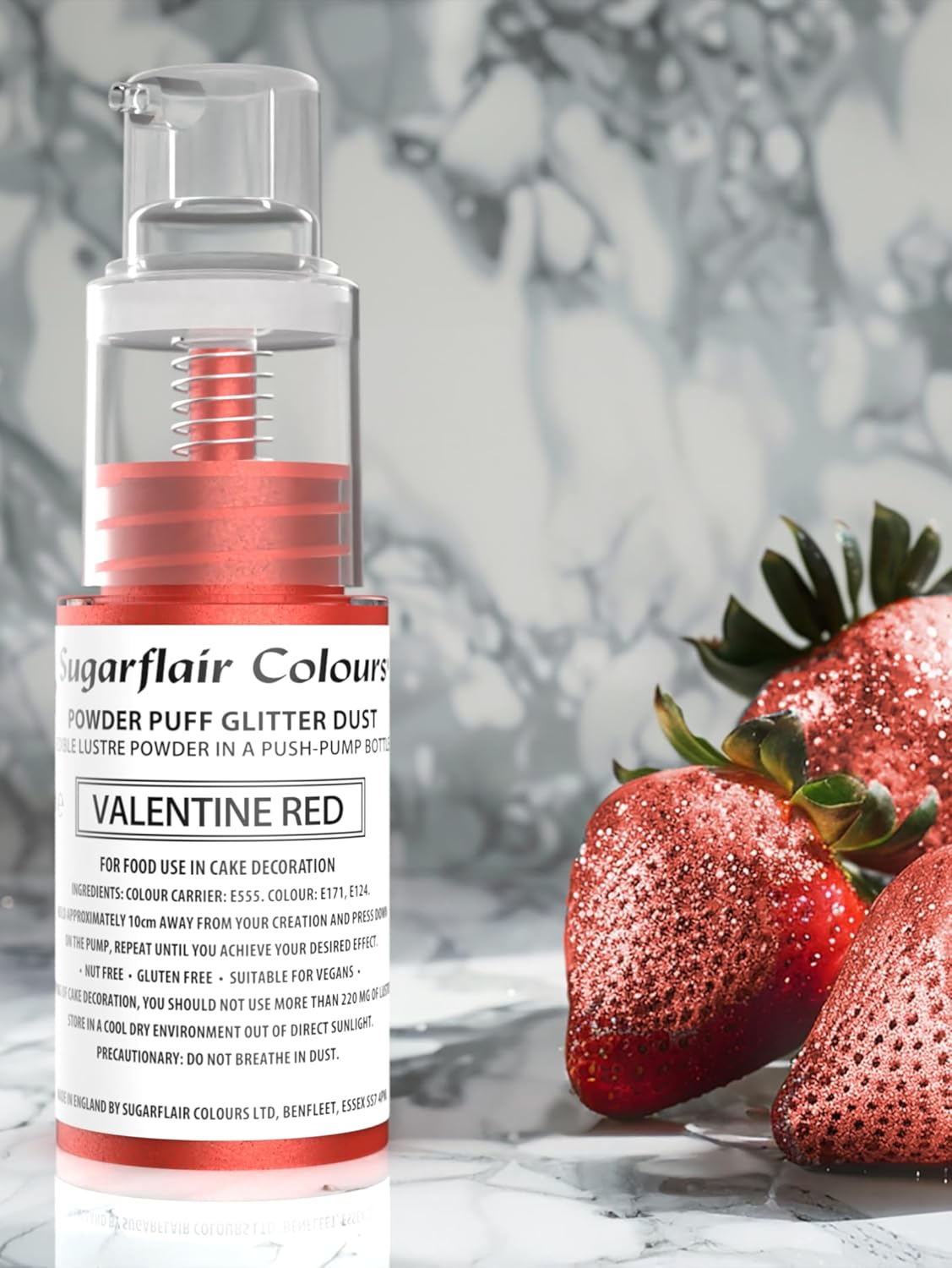 Sugarflairi pumbaga pihustatav pulbertolm on kiire ja lihtne viis kookidele, koogikestele, kaunistustele ja muule kauni välimuse andmiseks. Pulbriga tolmupihustit on lihtne kasutada.