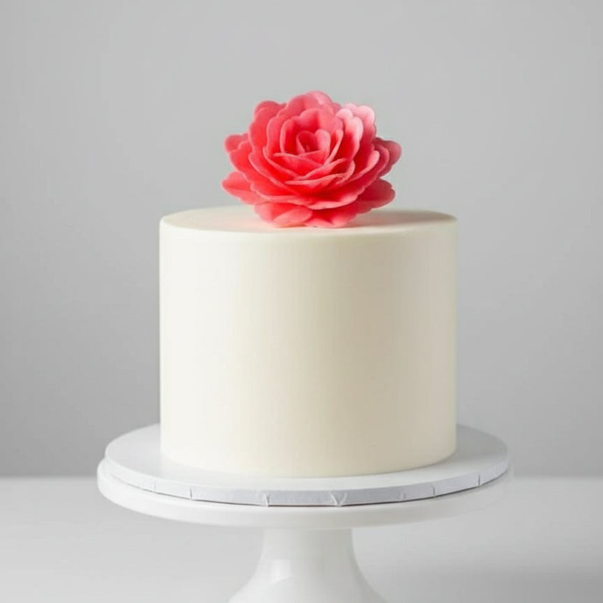 “Roosa hiina roos” on suur vahvlist valmistatud söödav roosikaunistus intensiivses roosas toonis.