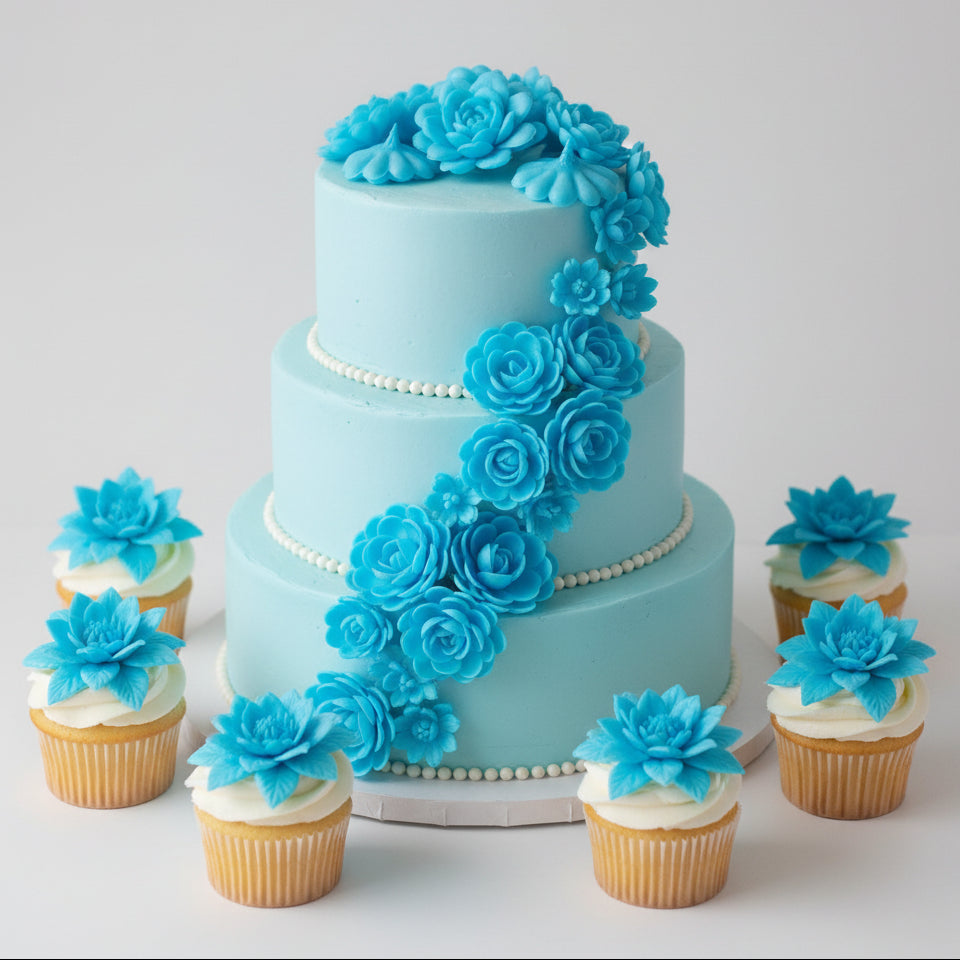 Suured sinised vahvlililled toovad igale tordile dramaatilise ja luksusliku ilme. Ideaalne valik temaatilisteks pidudeks, poiste sünnipäevadeks, beebipeoks või erilise tähendusega hetkedeks, kus soovid silmapaistvat tordikaunistust.