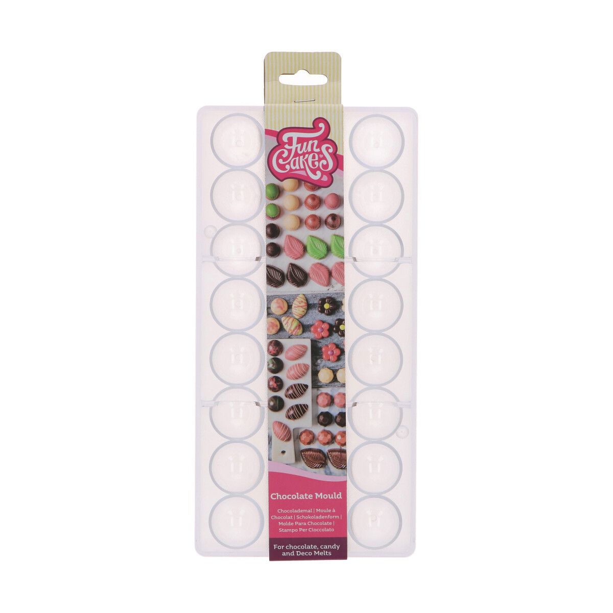FunCakes Chocolate Mold Dome'ga saate luua peene detaili ja disainiga šokolaadi. Läbipaistev šokolaadivorm on valmistatud polüstüreenist, mis muudab vormi eriti tugevaks. Võib kasutada šokolaadi (tempereeritud) või Deco Melts'i jaoks.