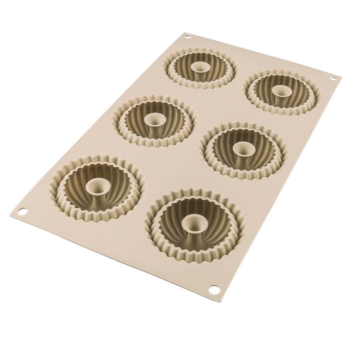 Tehke lõbusaid väikeseid kooke või maiuspalasid Silikomarti silikoon 3D silikoonvormi mini-raggio abil. Selle vormi abil saate teha kuus kooki. Seda vormi iseloomustab spetsiaalne sisepiir, mis annab maiuspalale väga originaalse ümara kuju.