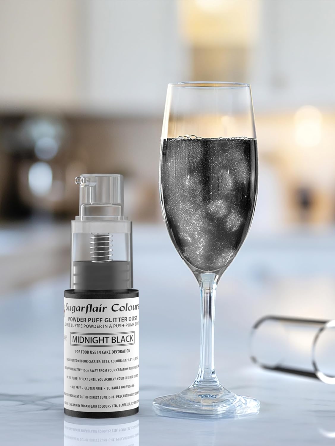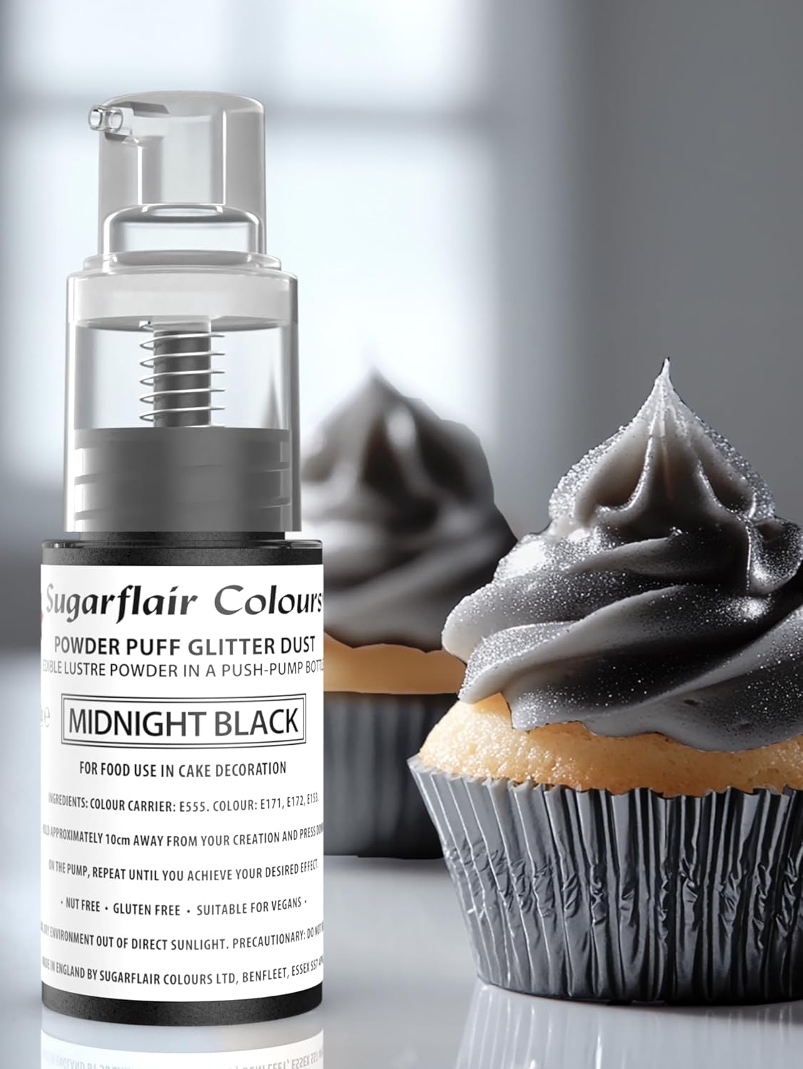 Andke oma loomingule kaunis viimistlus Sugarflairi söödava pulbriga surupumbaga pudelis. Pihustit on lihtne kasutada ja see sobib suurepäraselt kaunistuste, koogikeste, kookide ja muu jaoks.