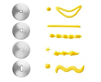 Standard mõõduga pritskoti otsikud, mida saab kasutada standartse "siduriga" ja lõigatava otsaga pritskottidega.