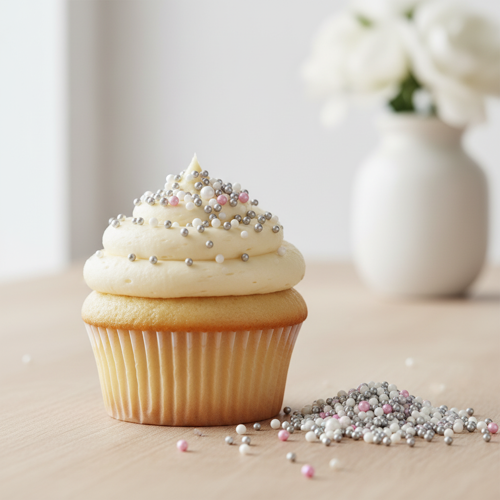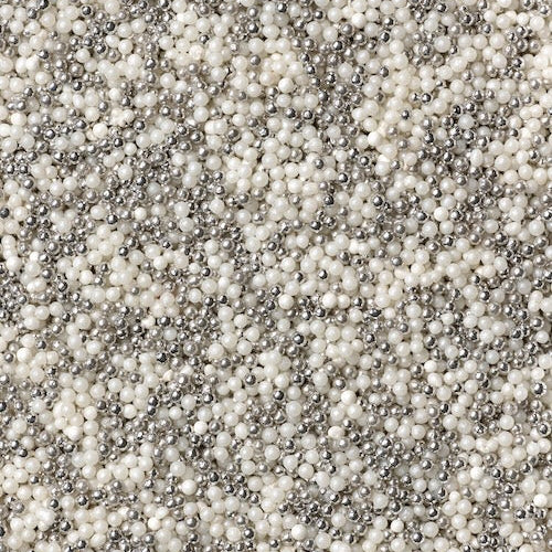 Suhkrupuistes on suhkrupärlid valgetes ja hõbedastes toonides — need sobivad eriti hästi jõulu-, aastavahetuse– ja pidulikesse küpsetistesse.