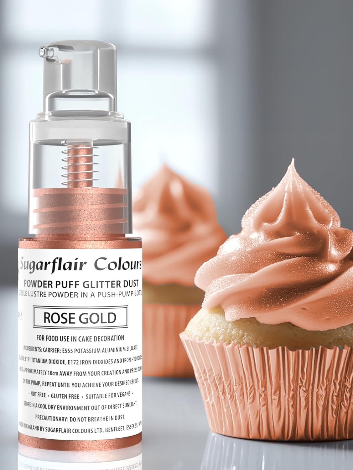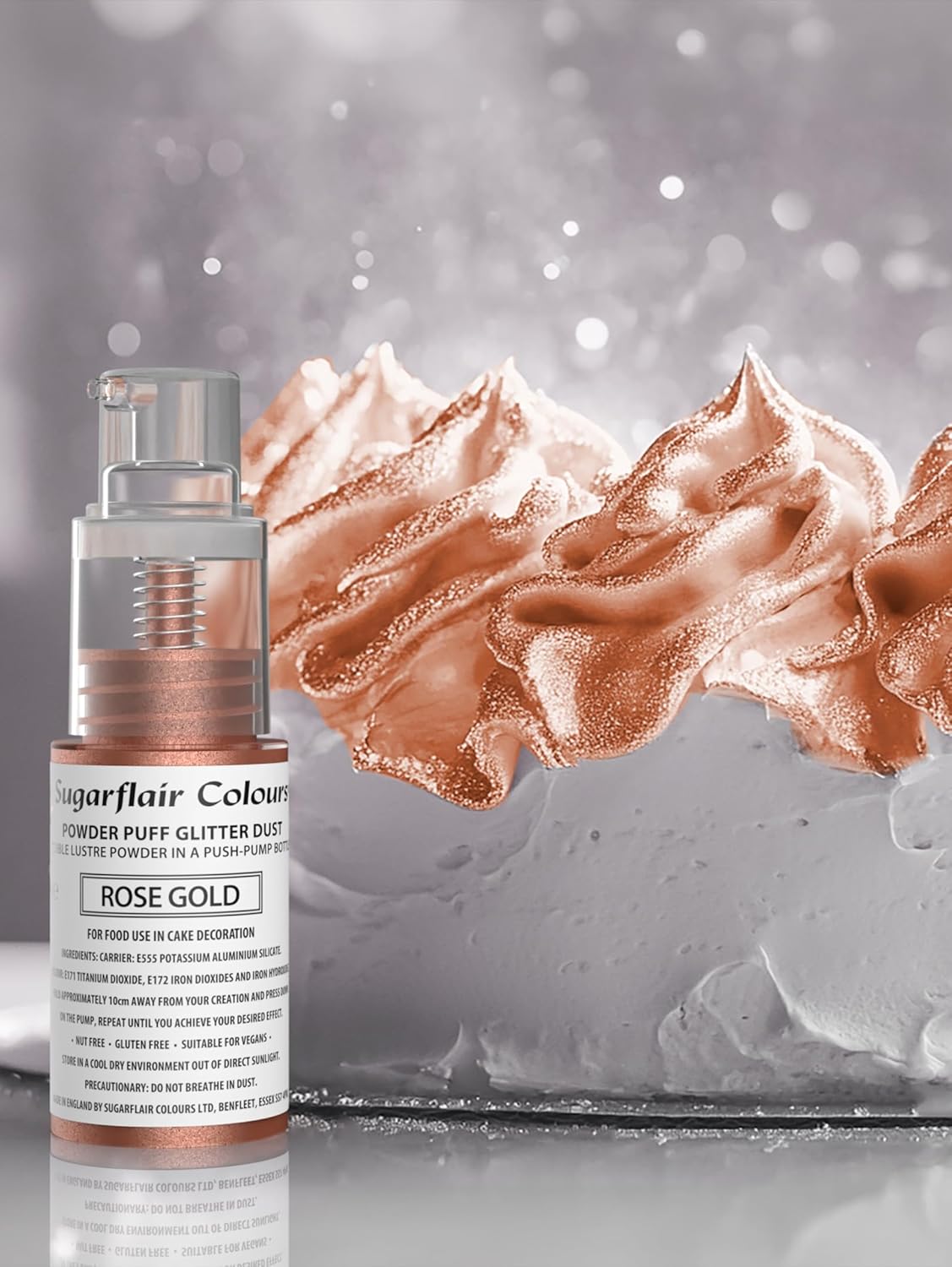 Sädelev pulbervärv pihustina - eriti mugav kasutada tortide, kookide, dessertide jm dekooride kaunistamiseks.