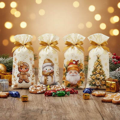 Põhja- ja küljevoldiga kinkekotid Jõulumees 85 x 236mm 10 tk