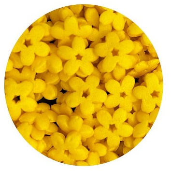 Kollane minilillede suhkrupuiste sisaldab heledalt läikivaid suhkrulille puisteid suurusega umbes 10 mm — ideaalne väike detail, mis muudab tordi, muffinid või magustoidu pidulikuks.